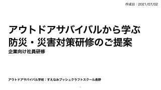 「アウトドアサバイバルから学ぶ 防災・災害対策研修のご提案」という形で企業向け社員研修の提案書を作成しました。
